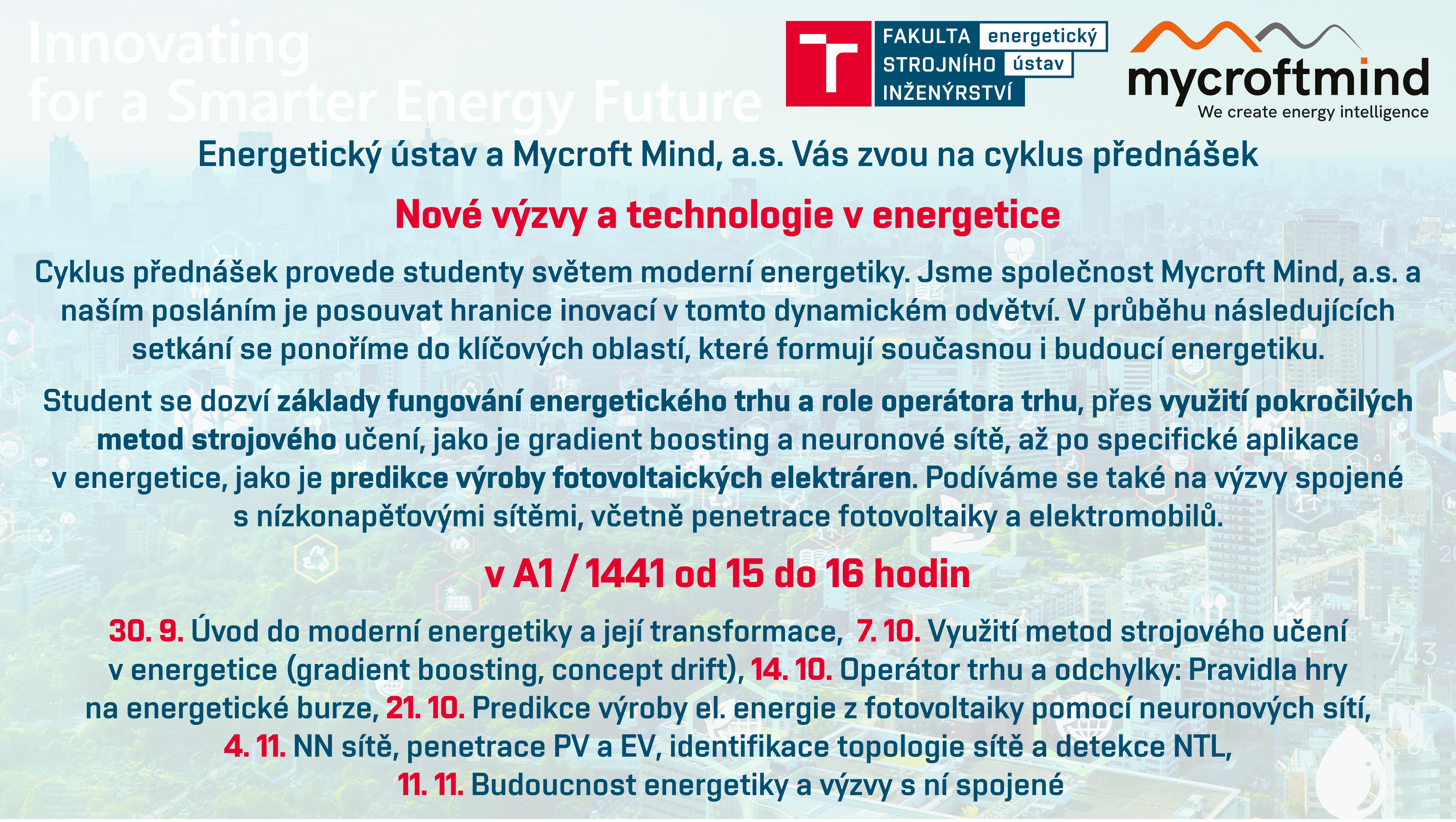 Energetický ústav a Mycroft Mind, a.s. Vás zvou na cyklus přednášek