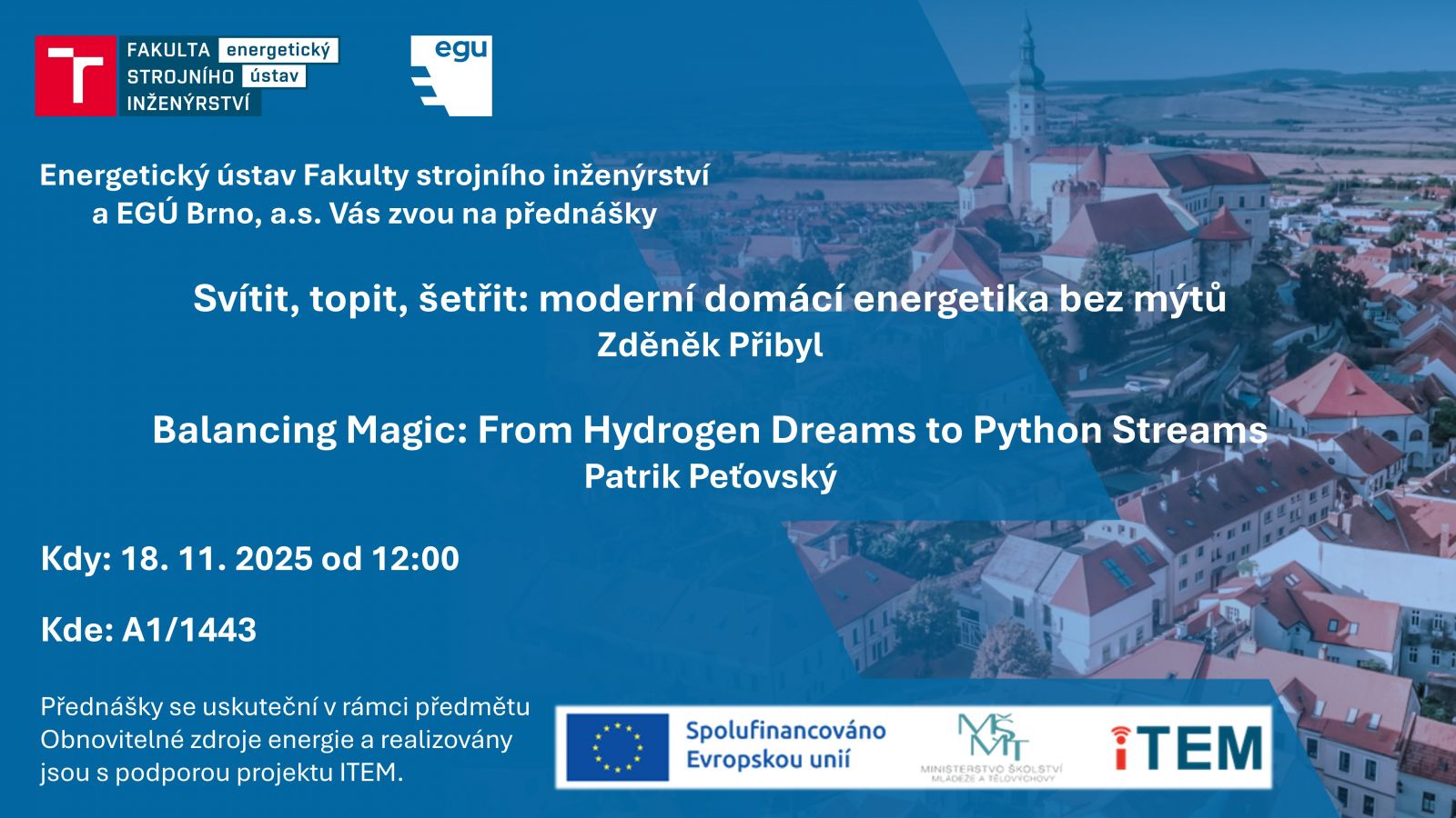 Přednášky se uskuteční v rámci předmětu Obnovitelné zdroje energie a realizovány jsou s podporou projektu ITEM.
