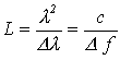 V rovnici (2-6) představuje c rychlost šíření záření a Df je změna frekvence zdroje vyzařujícího v intervalu vlnových délek l + Dl.
