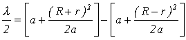 Po úpravách lze vyjádřit koherenční šířku R ve tvaru