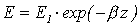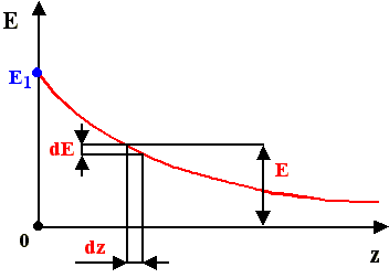 Při průchodu záření prostředím může docházet k jeho částečné absorpci. Průběh hustoty zářivého toku E procházející absorbující vrstvou ve směru z je zřejmý z obr. 2-10. Na elementární vzdálenosti dz se hustota zářivého toku E zmenší vždy o stejný poměr dE/E a můžeme psát