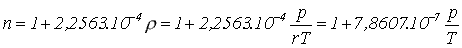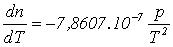 kde p je tlak a r je plynová konstanta vzduchu, která má hodnotu r = 287,04 J.kg-1.K-1. Derivace indexu lomu suchého vzduchu dle teploty za konstantního tlaku je dána vztahem