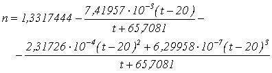 Pro index lomu vody a vlnovou délku He - Ne laseru (l = 632,8 nm) platí za podmínky konstantního tlaku např. vztah dle Tiltona a Taylora [3-27]