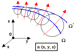 Obr. 2-12 Šíření vlnění nehomogenním prostředím o indexu lomu n(x, y, z)