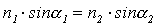 Pro případ šíření záření na rozhraní dvou transparentních prostředí o indexu lomu n1 a n2 , viz obr. 2-13, lze Snellův zákon psát ve tvaru