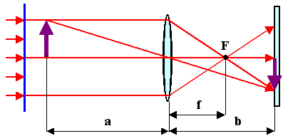 Dle zákonů geometrické optiky lze pro zobrazení objektu tenkou spojnou čočkou odvodit zobrazovací rovnici ve tvaru