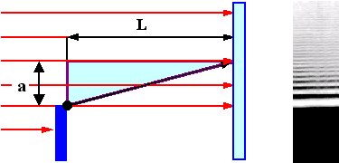 Ukázka difrakčního jevu na hraně pozorovaná na stínítku je uvedena v pravé části obr. 2-21.