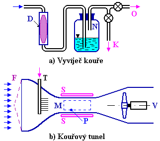 Zviditelnění proudění pomocí kouře či mlhy