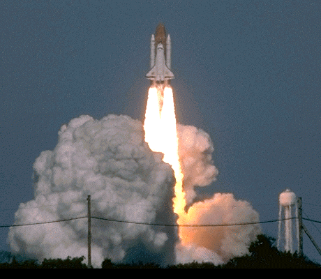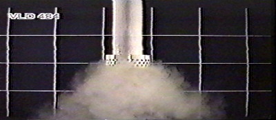 Obraz 2: Zviditelnění tvaru proudu při startu raketoplánu [6-11].