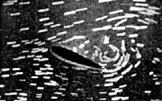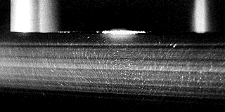 Příklad zviditelnění trajektorií bublinek při proudění pod čelem disku rotujícím ve vodě je uveden na obr. 3-9. Jedná se o bublinky, které se vyskytují ve vodě běžně po jejím napuštění. Jelikož jde o proudění v omezeném prostoru, je vír pod diskem nesymetrický. Zároveň lze uprostřed disku (v místě malých rychlostí) pozorovat shluk bublinek ulpívajících na povrchu disku.