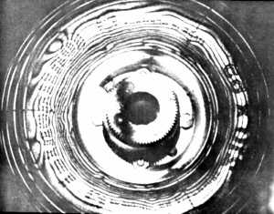 Na obr. 9-9 je holografický interferogram relativních deformací povrchu pneumatiky mezi dvěma stavy s různými vnitřními přetlaky. Jedná se vlastně o nedestruktivní defektoskopii pláště, kdy místa hustších interferenčních proužků odhalují místa vnitřních vad pneumatiky, projevujících se lokálními deformacemi povrchu. Interferogram byl pořízen na speciálním holografickém zařízení firmy Rottenkolber Holo-System [7-19], určeném přímo pro výstupní kontrolu pneumatik.