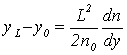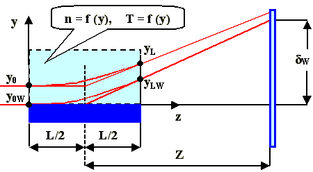 Vytknutím konstant v rovnici (11-8) před integrál a po zavedení z = L lze zjistit polohu paprsku yL – y0 vystupujícího z tepelné mezní vrstvy