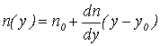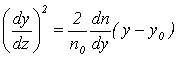 kde n0 je index lomu v místě z = 0. Považujeme-li profil indexu lomu v blízkosti povrchu za přímkový (obdoba optického klínu)