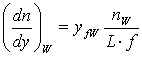 kde yfw je poloha hrany clony v ohniskové rovině, která právě cloní paprsky šířící se od povrchu, nw je index lomu u povrchu, L je délka objektu ve směru šíření světelných paprsků a f je ohnisková vzdálenost zobrazovací čočky. Po dosazení vztahu (12-4) a rovnice (2-16) pro derivaci teploty dle indexu lomu pro vzduch ve stavu u povrchu (viz kap. 2.9), a to do rovnice (11-25) z kap. 11.4, dostaneme