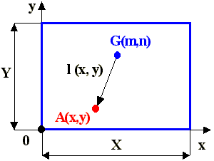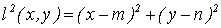 Kvadrát vzdálenosti l(x, y) bodu A od bodu G