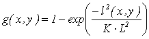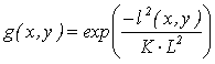 Váhový koeficient g(x, y) dle Gaussovy funkce pro případ vzdáleného okolí