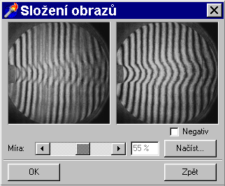 Kombinace skládání obrazů a funkce interferogram
