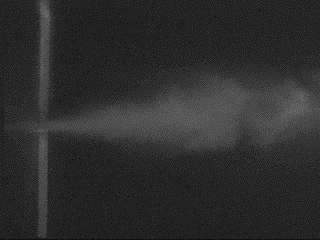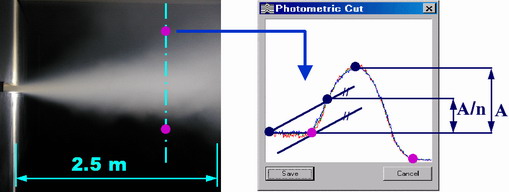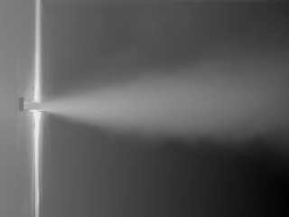 Zviditelnění tvaru proudů ze vzduchotechnických vyústek umožní efektivní určování tzv. konstant vyústek [3-4], viz příloha P19. Nejrozšířenějším a také nejjednodušším je zviditelnění tvaru proudů pomocí kouře či mlhy, viz kap. 3.2 . U této metody můžeme mít sice libovolně veliké zorné pole, ale hranice proudu jsou vzhledem k promíchávání vzduchu na okrajích proudu málo zřetelné.