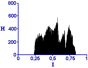kde H(i) je i-tá složka vektoru histogramu (počet bodů v obraze se stejnou intenzitou), X, Y jsou rozměry obrazu a I0 je nejnižší intenzita původního obrazu.
