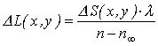 kde l je vlnová délka světla. Je zřejmé, že rovnice (17-4) umožňuje počítat pouze změnu tloušťky objektu, a proto je třeba pro vyjádření absolutní tloušťky transparentního objektu L(x, y) znát v některém jeho místě referenční tloušťku.