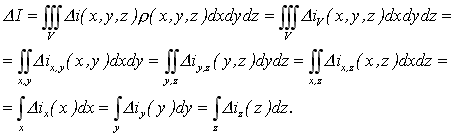 Z tohoto vztahu vidíme, že délková hustota entalpie D iy(y) ve směru y je úměrná integrálu změny interferenčního řádu v řezu y = konst. (viz také obr. 18-4). Je zřejmé, že při pozorování stejného objektu ze směru x, kdy interferogram je zaznamenám v rovině z-y, dostaneme pro vyjádření délkové hustoty entalpie D iy(y) ve směru y vztah, který musí dávat stejný výsledek, jako vztah (18-32). Analogicky je možné vyjádřit také změny délkové hustoty entalpie D ix (x) ve směru x a D iz (z) ve směru z.