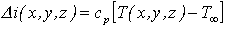 kde T(x, y, z) je teplota v místě x, y, z, Too je teplota v referenčním místě a cp je měrná tepelná kapacita za konstantního tlaku, která je pro ideální plyn konstantní. Je zřejmé, že výpočet rozložení změny měrné entalpie D i(x, y, z) můžeme provést z rozložení teplot T(x, y, z), které lze vyhodnotit z interferogramů, jak je to uvedeno pro ideální plyny v kap. 18.2.