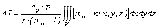 kde n(x, y, z) je index lomu v místě x, y, z a noo je index lomu v referenčním místě. Dosazením rovnice (18-26) do rovnice (18-22) dostaneme změnu celkové entalpie ve tvaru