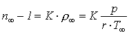 Z Gladstoneova - Daleova zákona (2-14), viz kap. 2.9, a ze stavové rovnice ideálního plynu lze vyjádřit výraz (noo - 1) jako funkci Gladstoneovy - Daleovy konstanty K a hustoty roo či jako funkci referenční teploty Too, tlaku plynu p a plynové konstanty r ve tvaru