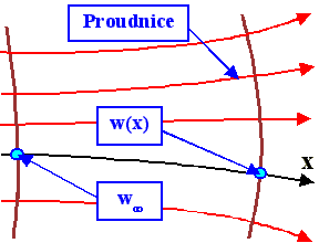 Obr. 18-6 Schéma k výpočtu rychlostí plynů ve směru proudnic