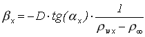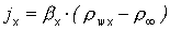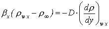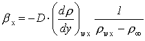 kde D je součinitel difúze přenášené látky do okolního prostředí (vztažený k rozdílu hustot), který lze pro dvojice látek nalézt v tabulkách či vypočíst z různých vztahů [5-2], [5-6] a (dr /dy)wx je lokální derivace hustoty přenášené látky u povrchu, viz obr. 18-14. Pro lokální součinitel přestupu látky (vztažený k rozdílu hustot) platí