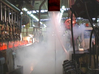 Video 4: Videozáznam proudění v okolí linky na výrobu lahví s použitím spodní vzduchové sprchy.