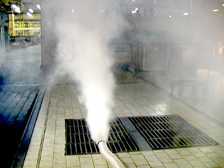 Zviditelnění proudění mlhou může často přispět i k řešení problémů tepelné pohody. Např. ve sklářských provozech je v okolí výrobních linek značná tepelná zátěž pracovníků, kterou však lze jen obtížně snížit, jelikož intenzívní ochlazování v tomto prostoru může narušit technologii výroby. Zmenšení tepelné zátěže je možné dosáhnout např. pomocí vzduchové sprchy, která by ofukovala pracovníka u výrobní linky a neovlivňovala by přitom technologii.
