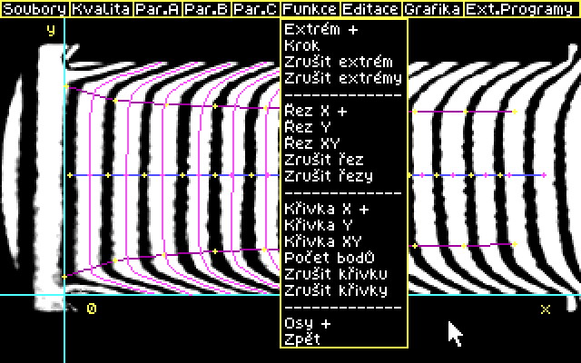 Příklad vyhodnocování interferogramu z daného výzkumu pomocí software Interfer 2.0, viz kap. 16.9, je uveden v přiloženém souboru obraz 3. V obraze je zaveden souřadný systém (otočeno o 90°), automaticky jsou určeny průběhy interferenčních proužků a rozložení proužků v ose štěrbiny. Interaktivně jsou určeny hranice proudu, čili tloušťky tepelných mezních vrstev.