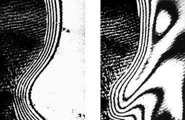 Fotografie použité skořepinové formy s odlitkem je na obraze 1. Na obraze 2 jsou příklady interferogramů teplotních polí v okolí krčku a nálitku skořepinové formy. Na levém interferogramu je teplotní pole při volné konvekci ve vzduchu, při teplotě povrchu nálitku asi 420 °C a teplotě okolního vzduchu 19,5 °C. Na povrchu formy je patrná tepelná mezní vrstva. Na pravém interferogramu je volná konvekce při teplotě nálitku asi 500 °C a teplotě okolního vzduchu 21,8 °C. Volná konvekce je zde narušena parazitním prouděním v okolním prostředí.